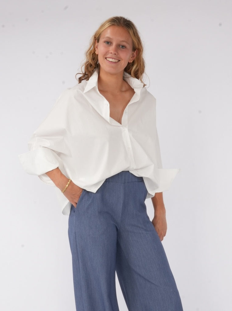 Wijd hemd met vlindermouw en grote manchette. Katoen