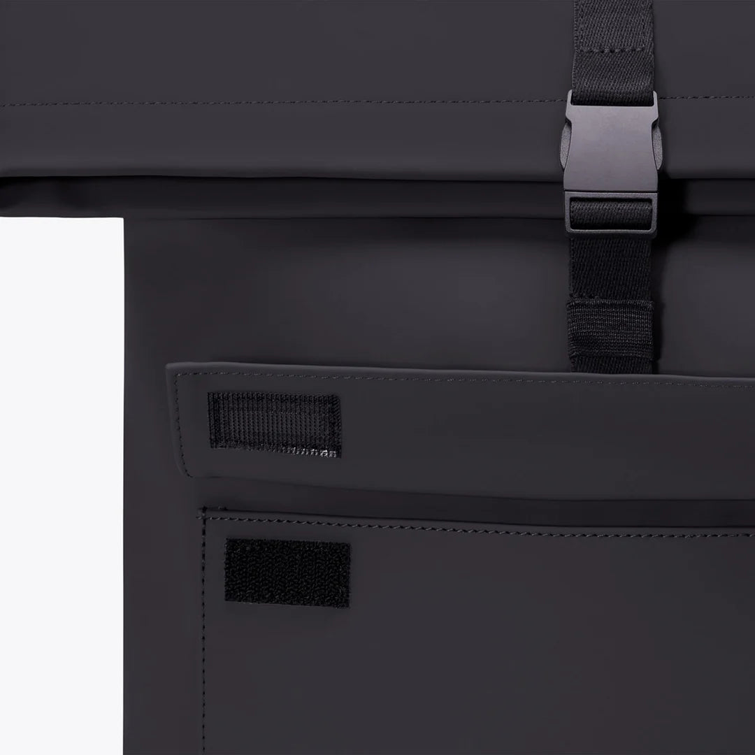 The 'PUrTEX∞' is a custom ultra-durable tech material. Ucon Acrobatics has developed this progressive material over the years, which is second to none. Increased longevity - reduced thickness. Lower ecological footprint and steps into circularity. It is made from recycled textile waste and finished with a rigid, solvent-free polyurethane (PU) coating. The PU foam layer has a cross-link structure, so the functional aspects are similar to those of molded rubber. The high performance has been proven in test results. The surface adhesion strength is four times better, and the scratch resistance has even improved over 100 times compared to conventional artificial leather. Furthermore, PU making is free of solvents such as DMF and VOC. The CO2e is reduced by over - 50%, the energy is reduced by over -40% and comes mainly from renewable sources. The essence of minimal design.